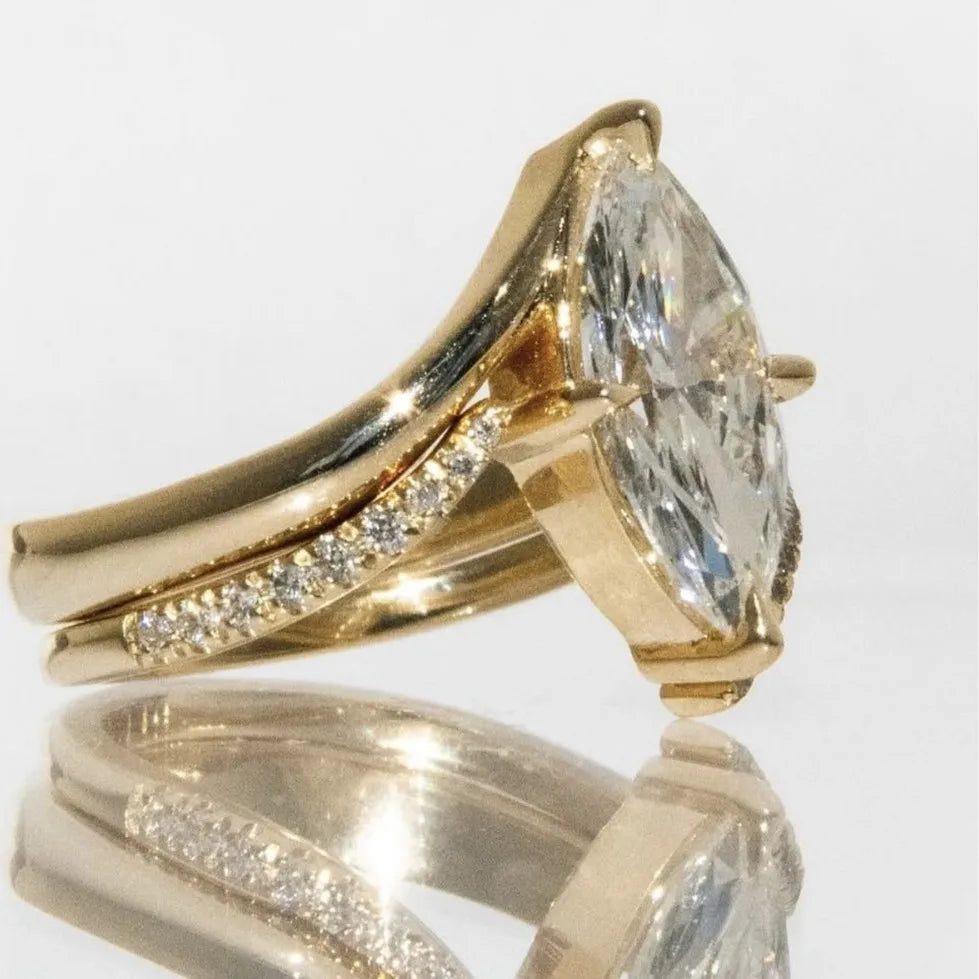 OEVAS 3CT Marquise Cut Moissanite Two Rings 100% S925 Silver Double row Ring for Women Wedding Party Fine Jewelry